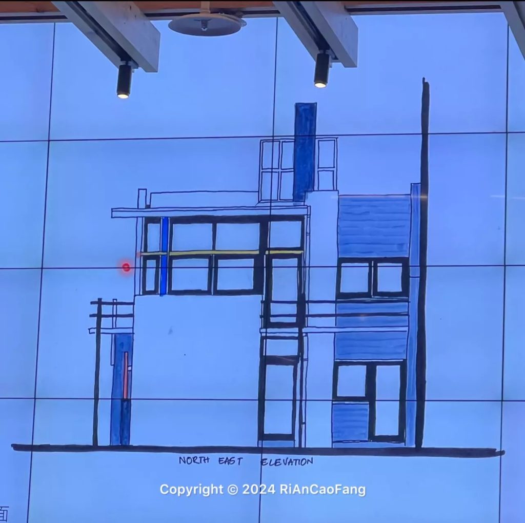 生於1888年的荷蘭設計師Gerrit Retveld,最著名的紅藍椅(Red-Blue Chair,1918)即是Gerrit Retveld所設計,致力奉獻於建立現代設計準則。在網路科技還不發達的年代裡,可以有許多的設計巧思實在感到令人敬佩! 例如: 不同層樓之間優雅的對話方式—傳聲筒,以顏色的方式定義空間領域的劃分—容易髒的地方使用深色,在整體建築物製的裡裡外外設計許多小機關讓生活更加的便利。